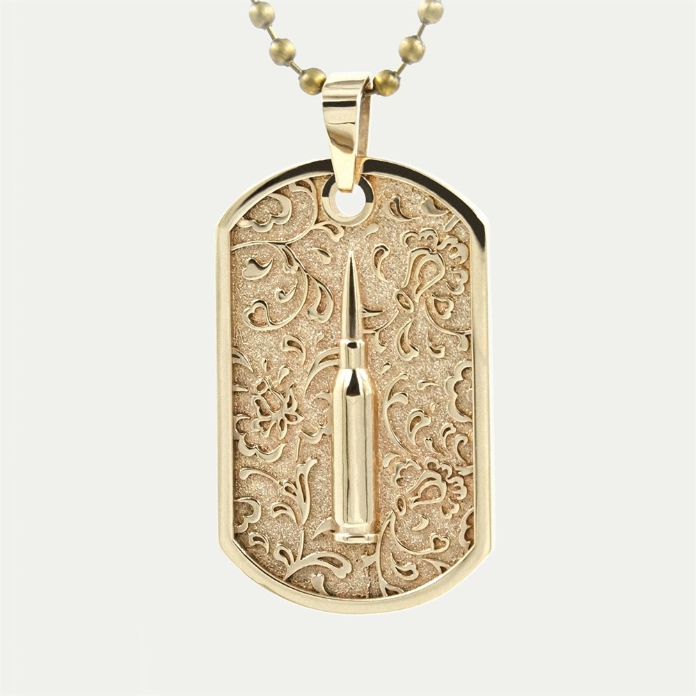 Bullet — уникальное украшение, в котором мощь и сила гармонично сочетаются с природной красотой. В центре композиции расположена стилизованная пуля, окруженная изящным растительным орнаментом, создающим неповторимый художественный образ.